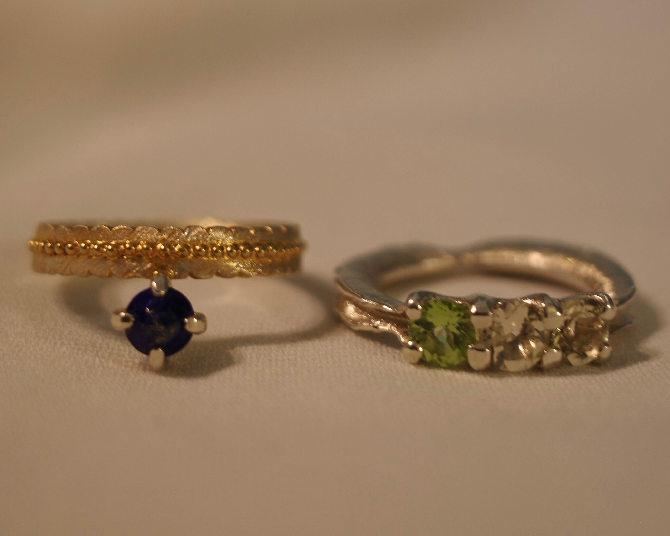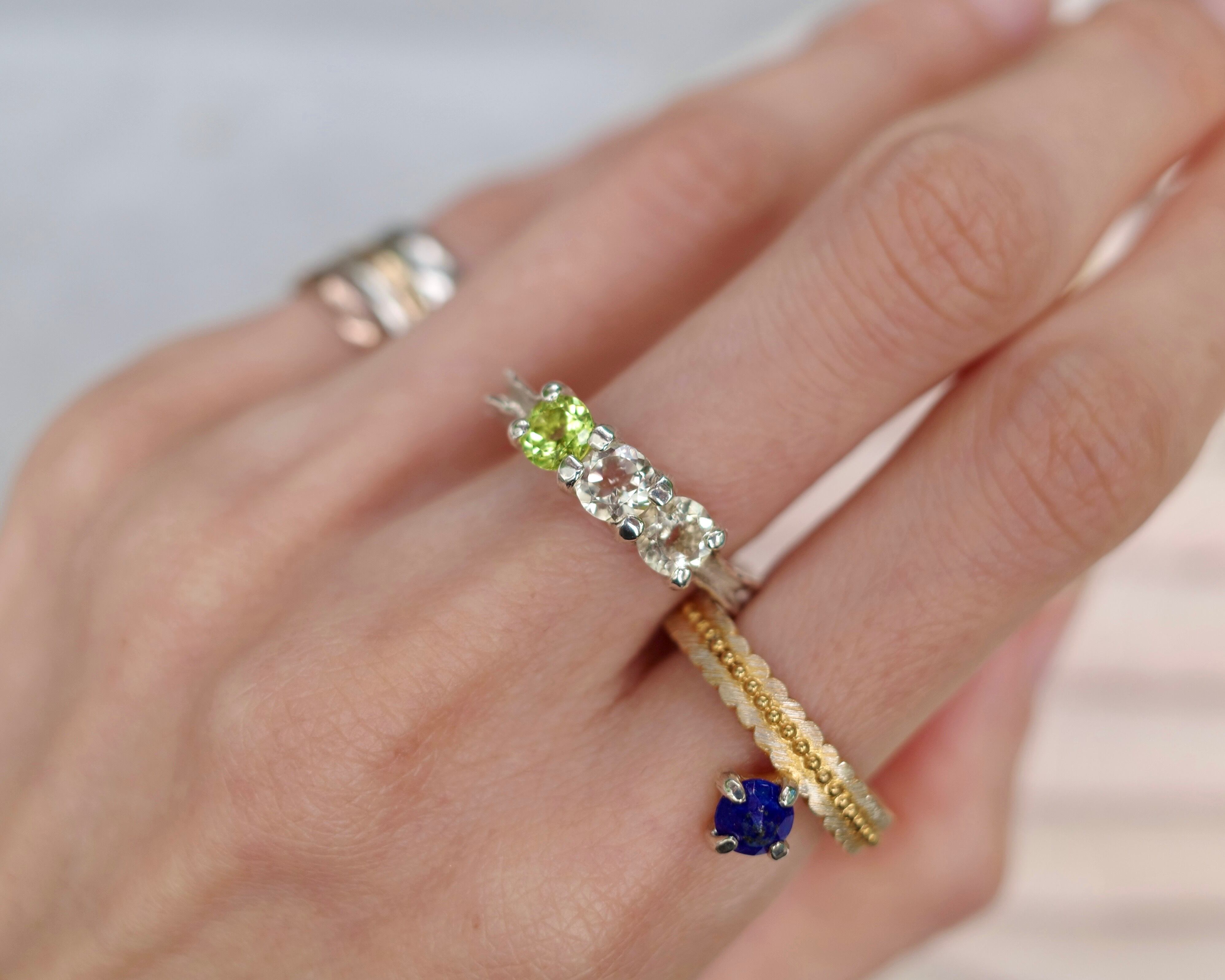 Sparkling tropical flowers ring with peridot&lemon quartz #12