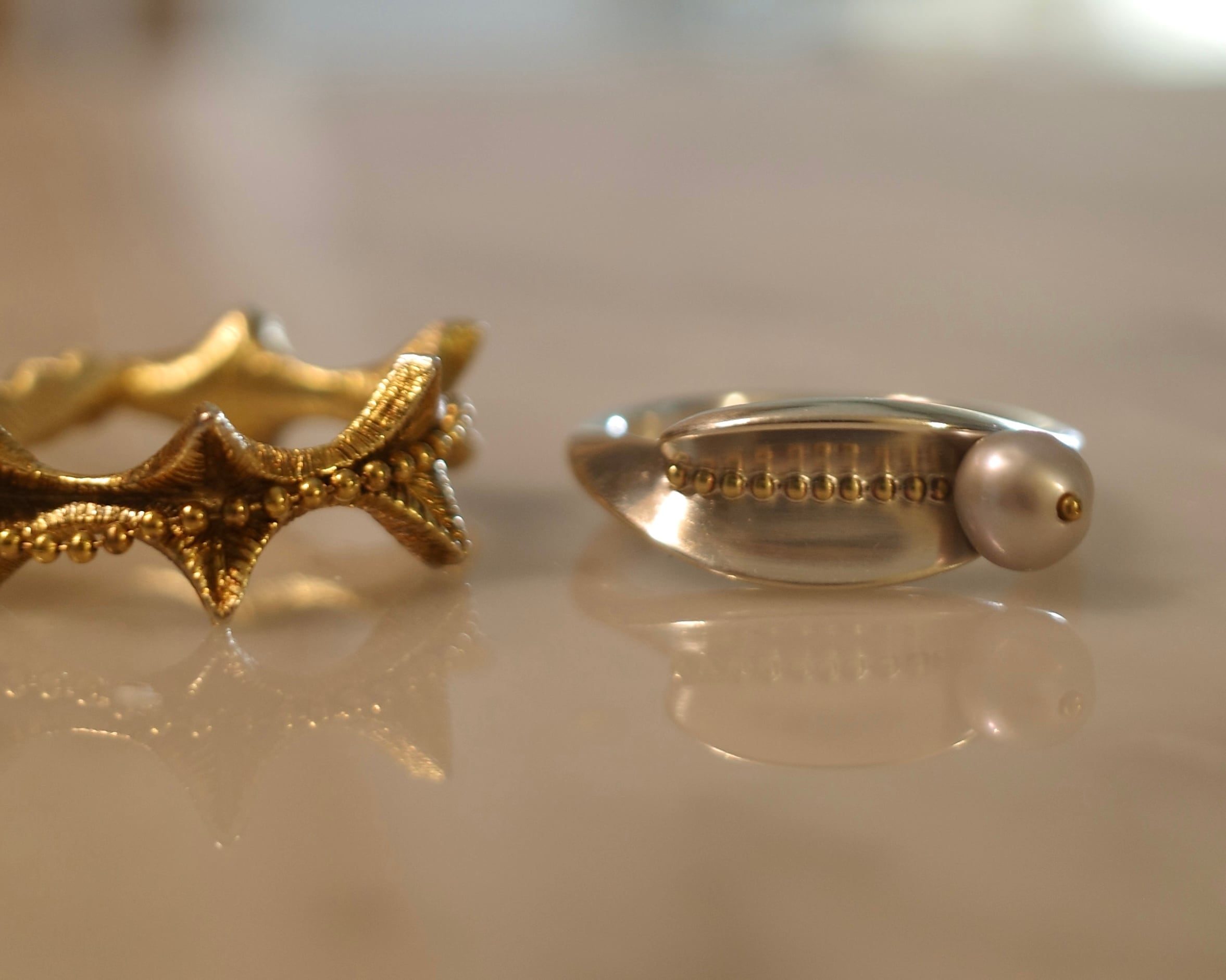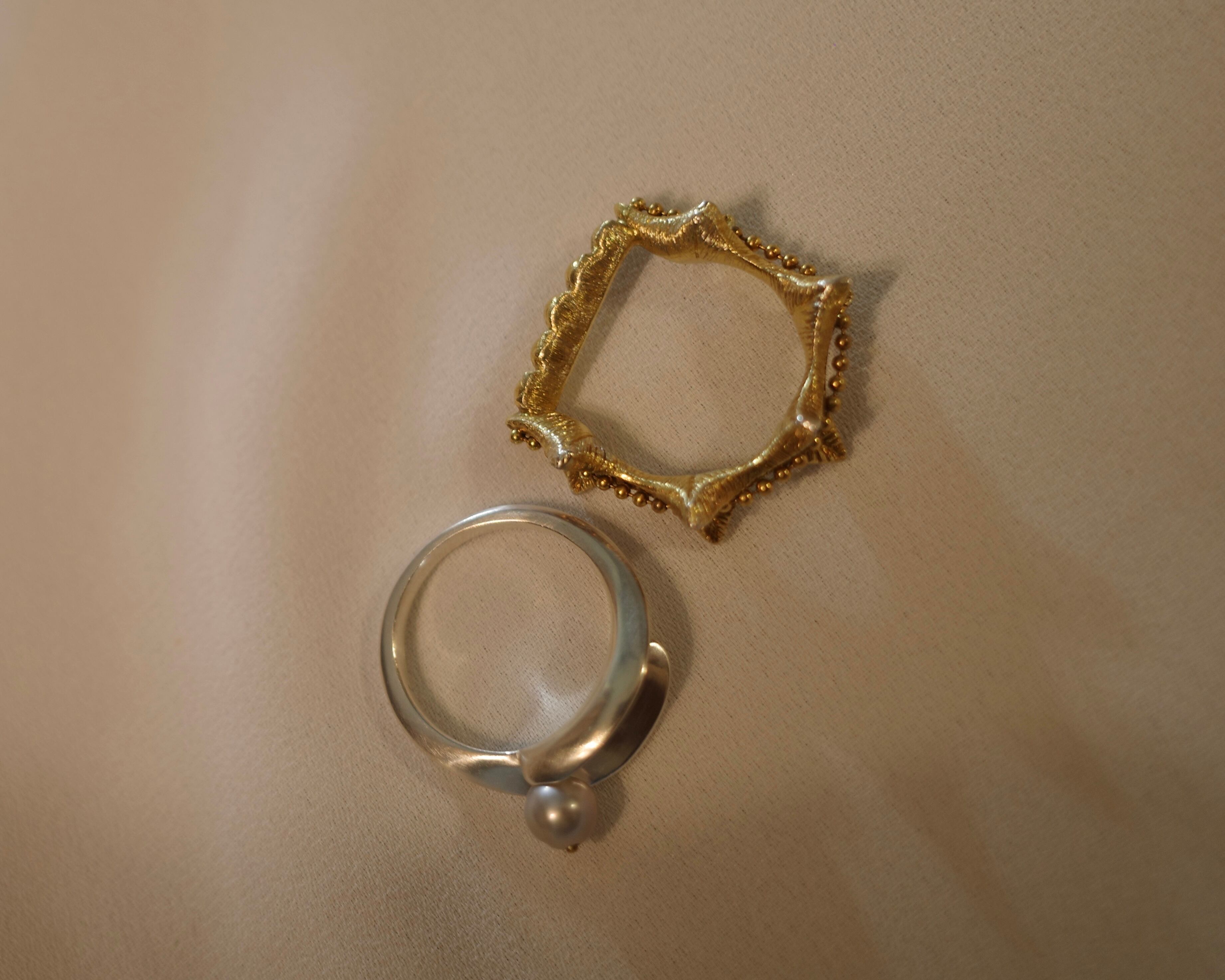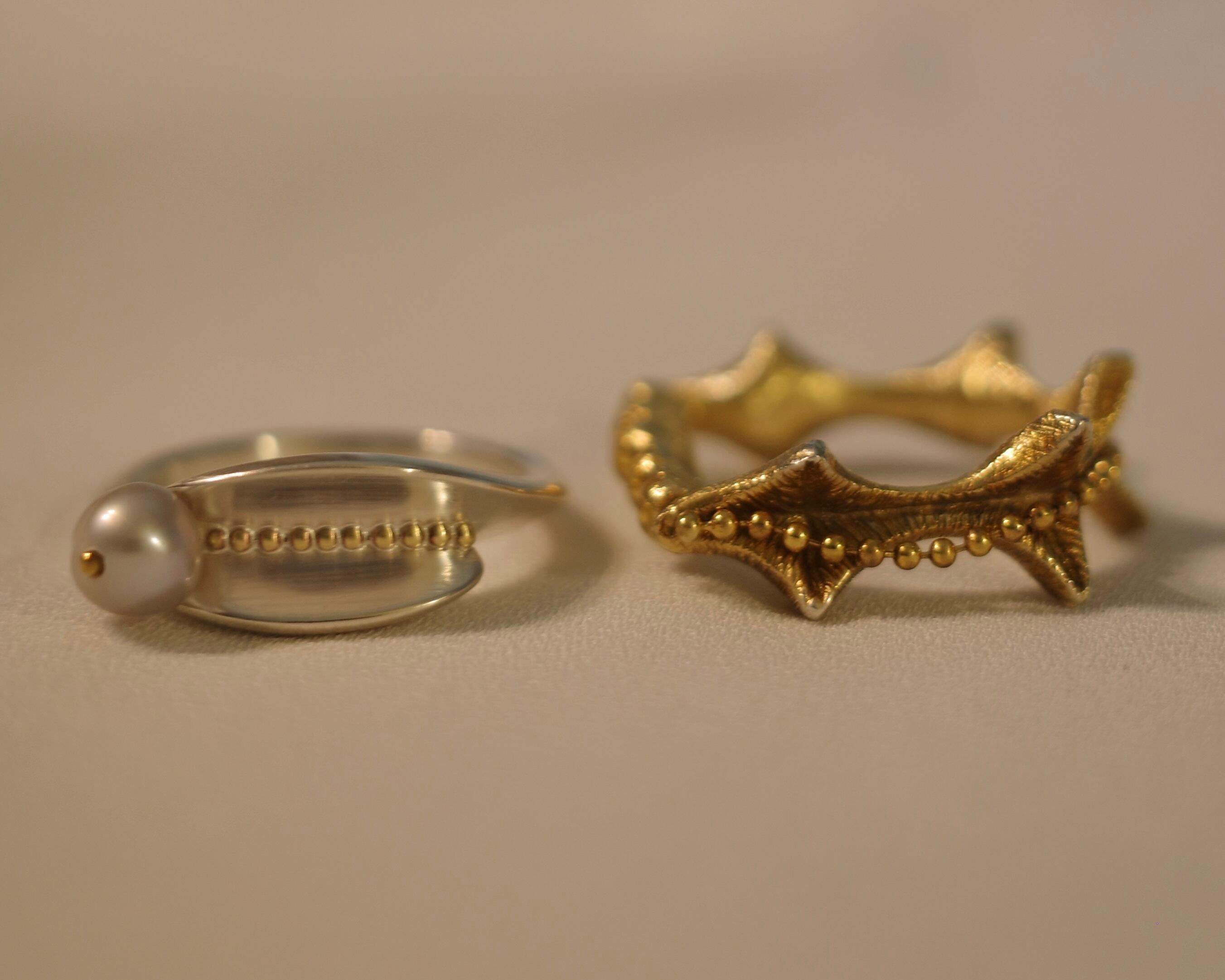 新鮮な芽吹きに降りた露をイメージしたリング。
